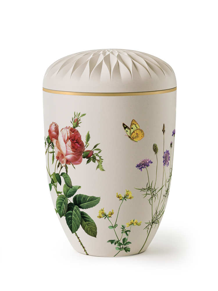 Naturstoff Dahlie creme mit Dekor Blumenwiese