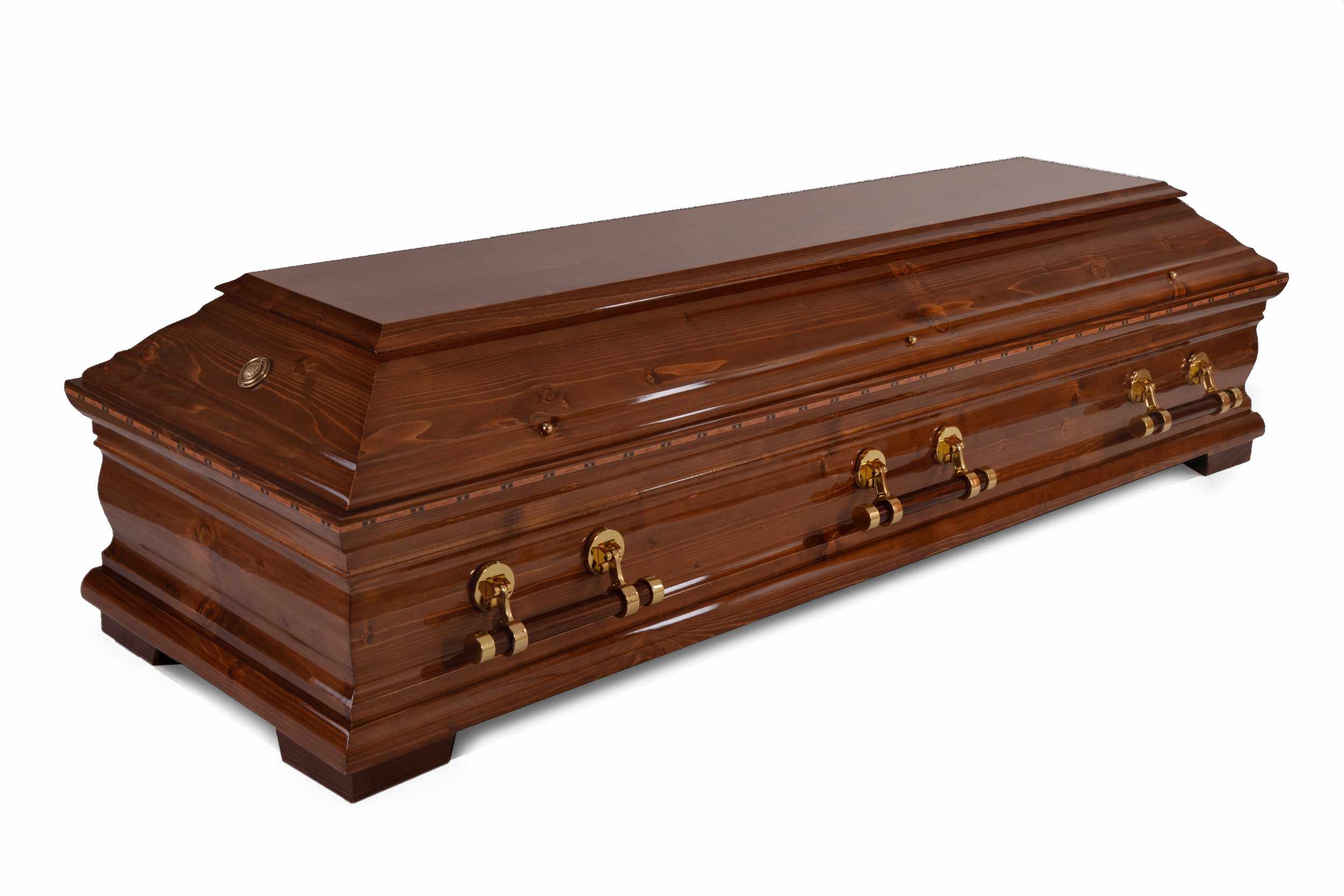 Zirbenholz Barock-Profil, honigfarben gebeizt mit Messing-Holzgriffen