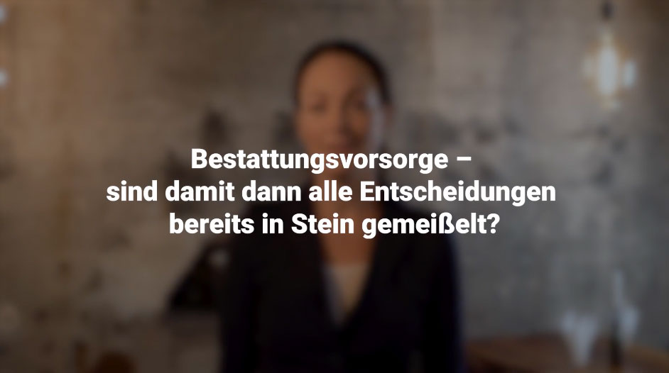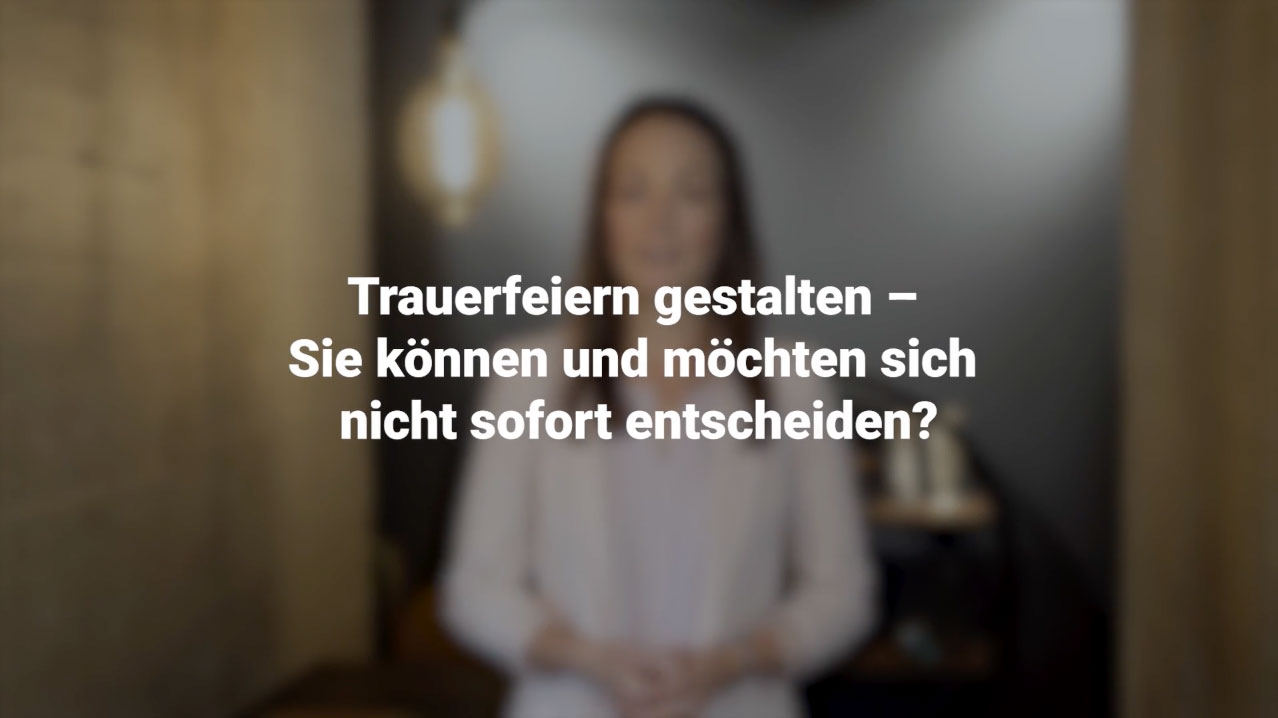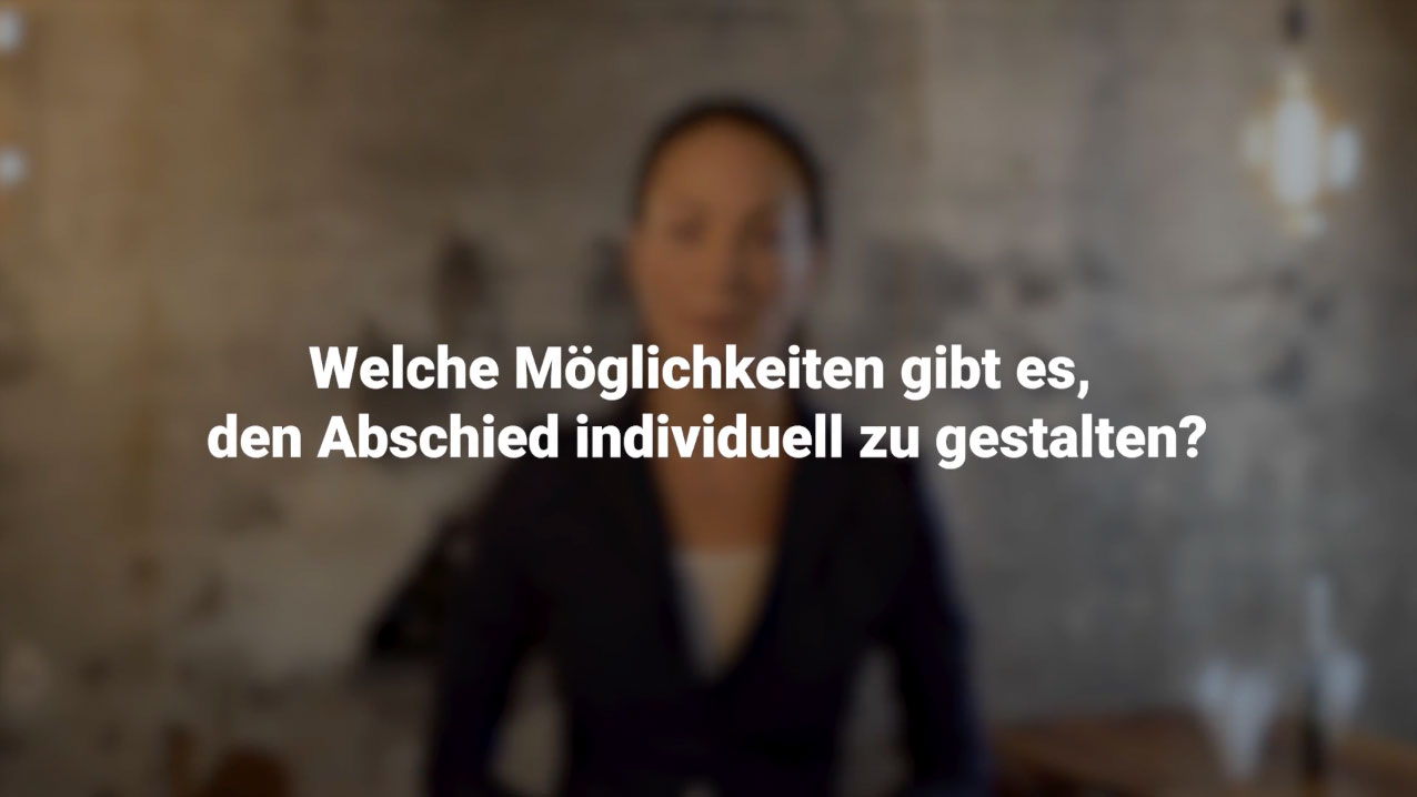 Wir wissen, dass es nicht allen Menschen leichtfällt, Informationen auf einem Monitor zu lesen. Und dabei gibt es so viele Fragen rund um die Bestattung, die Gestaltung des letzten Abschieds, zu Ritualen und Bürokratie, zu Nachhaltigkeit und alternativen Bestattungsmöglichkeiten. Und da mit mehreren Sinnen ohnehin auch mehr begreifbar wird, haben wir hier einige filmische Antworten für Sie zusammengestellt – zum Hören und Sehen. Allerdings kein Ersatz für ein persönliches Gespräch – zu diesem stehen wir Ihnen immer gerne zur Verfügung.